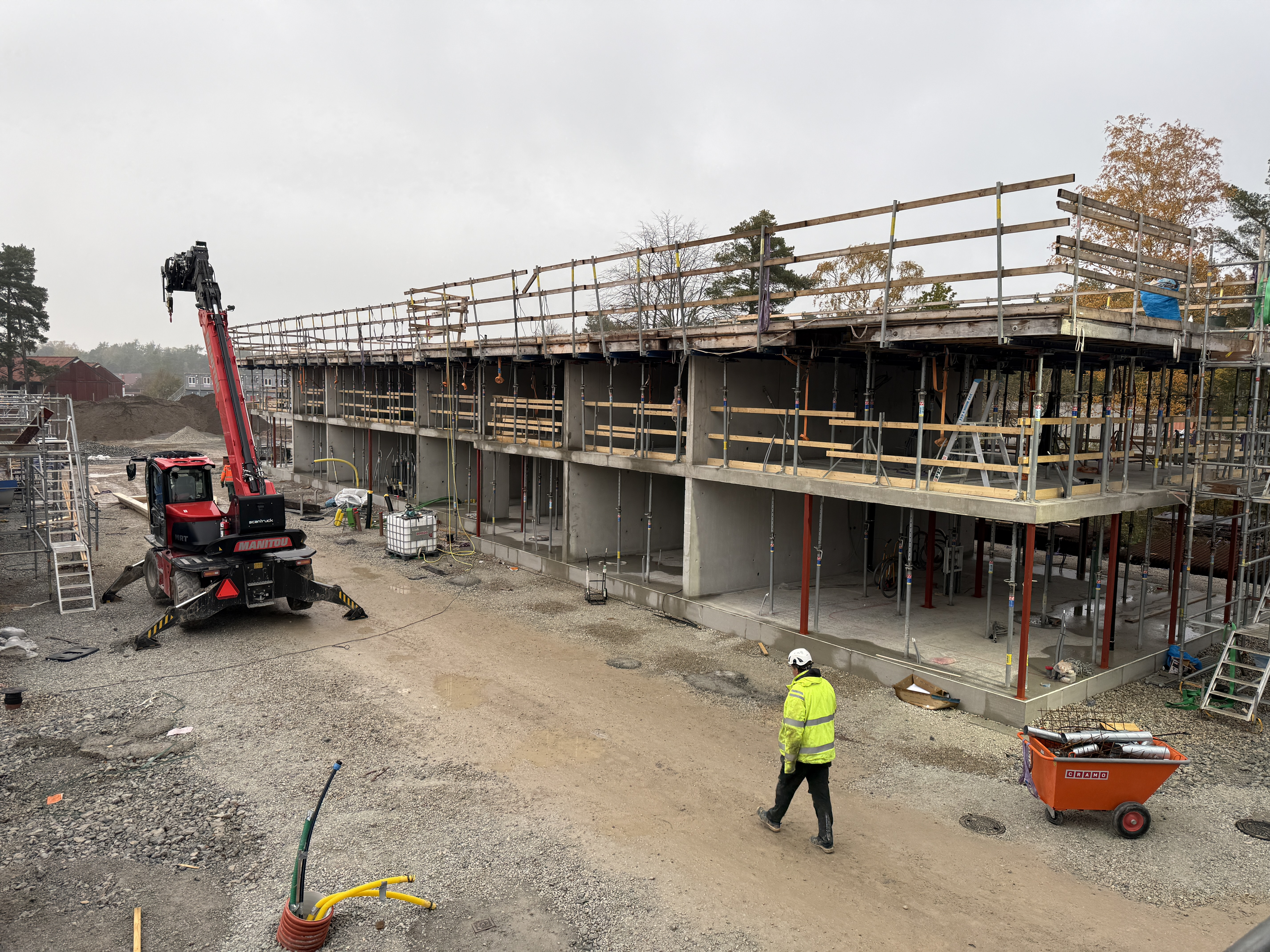 Gjutning av plattan till första huset, hus 9.